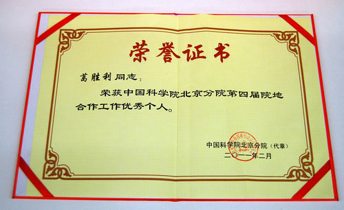 为进一步推进中科院院地合作工作,鼓励各科研院所积极进行院地合作工作,北京分院根据《中国科学院北京分院院地合作工作奖励暂行规定》,经北京分院院地合作工作指导委员会评议,共有六个单位获得“中国科学院北京分院第四届院地合作工作先进单位”称号,13位同志获得“中科院北京分院第四届院地合作工作优秀个人”。