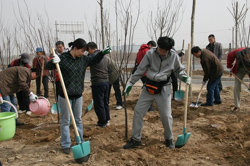 科研和管理骨干们干劲十足,从挖坑、扶苗、培土到浇水,不假他人之手,亲力亲为,看着他们熟练地动作,听着他们在植树间隙中说起当年,当他们还是年轻小伙子的时候植树的经历,感觉这次植树活动不仅仅是给大家提供了一个放松身心的机会,更是让很多骨干又回到了曾经的青葱岁月。在忙碌植树的同时,骨干们还在休息的间隙抓紧时间相互沟通,聊聊工作,聊聊生活。日常工作的紧张占用了他们太多的业余时间,也难得有这样一个轻松愉快的氛围彼此间加深沟通和了解,而创造这样一个环境和氛围,也是科研与骨干俱乐部成立的初衷。