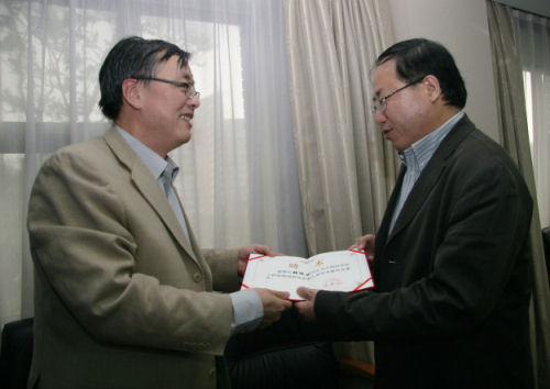 秦伟所长向金红光主任发放聘书