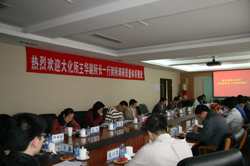 4月26日,大连化学物理研究所副所长王华率领该所管理部门负责人及相关人员一行13人到研究所调研交流质量管理体系建设工作。副所长朱俊强、所长助理谭春青以及各管理部门和循环流化床实验室相关工作人员出席了此次座谈会。研究所还特别邀请了中国质量协会科技分会秘书长王富良研究员参会。本次会议由科技发展处质量与保密办公室主任白鹭主持。