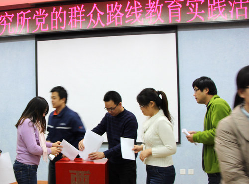 会上对所领导班子及班子成员进行了评议,结果显示,对研究所领导班子在党的群众路线教育实践活动中的总体评价认为“好”和“较好”的占92%以上,其他各项评议结果也均在90%以上。