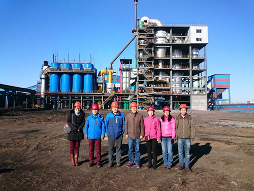 大家首先参观了控制室,控制室宽敞明亮,张贴着交接班管理办法、紧急事故处理方案、安全操作规程和岗位职责等,显示出企业管理的标准化和规范化;操作人员通过DCS控制系统实现参数的调节,设备的开启等工序,自动化程度高。大家通过控制室的控制画面了解到,气化炉运行稳定,出站煤气流量66000Nm3/h,超过设计指标,其他运行参数均达到设计值。接着,大家又冒着严寒,到气化炉上进行了仔细参观,详细了解工艺流程和设备运行状况,更直观地认识大型循环流化床气化炉工程。