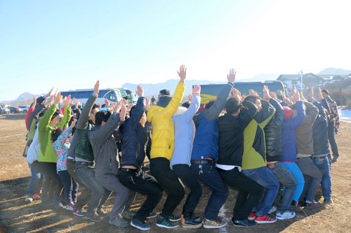 雾霾逐渐散去,北京迎来久违的艳阳天。为了更好地激发实验室成员的工作激情,提升责任感及归属感,12月5日,轻型动力实验室党支部和分工会联合组织了主题为“绽放激情 成就梦想”的冬季拓展活动,主要包括破冰团建、坦克大战和突破自我三部分活动。