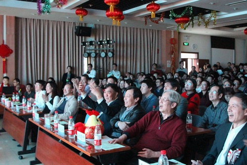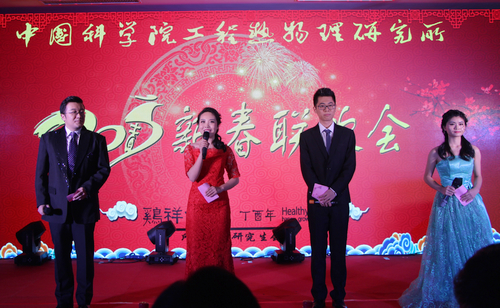 三个多小时的新春联欢会精彩不断,掌声连连,场下观众在观看节目的同时,在微信墙上频频进行话题互动,对节目和演出者的夸赞不断,场上场下、线上线下洋溢着一片欢乐的气息。徐院士、金院士为生肖属鸡的职工和学生送上了生肖纪念,并预祝大家在新的一年里取得佳绩;现场抽奖环节更是一次次将联欢会的气氛推向高潮!联欢会上,职工、学生同台表演,亦师亦友,用多种多样的形式祝福大家新年快乐,祝福研究所蒸蒸日上,越来越好。