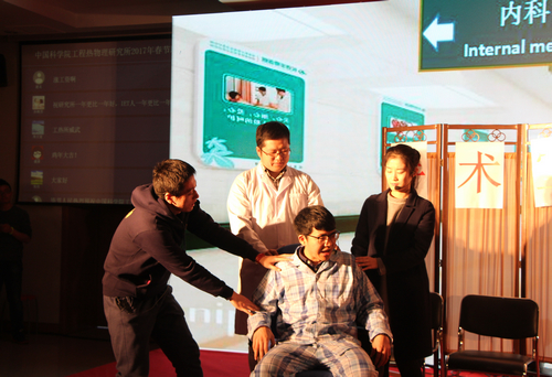 储能研发中心同学带来的《恭喜发财》正式拉开了大联欢的序幕,点燃了台上台下的欢乐氛围。小品类节目中国家能源风电叶片研发(实验)中心的《特殊的红包》以诙谐的方式反映了现在社会中的医患关系问题,深刻而不失幽默;同样由该实验室带来的《科研趣事》将身边的科研生活融入到小品中,精彩的表演令观众笑声不断;循环流化床实验室的《非诚勿扰》以女博士相亲为主线,刻画了土豪、文艺青年和工科男三类男青年各自的形象,流畅而又自然地体现了研究所科研人员的踏实肯干精神,为工科男博士打了个广告;传热传质中心自编自演的《科院甄嬛传》和能源动力中心的《面试》,同样让人印象深刻。