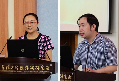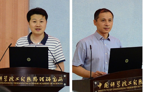 循环流化床实验室党支部书记高鸣、轻型动力实验室党支部书记龚建波作报告