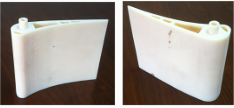 3.平面叶栅气动传热实验台改造。设计并加工了与原有平面叶栅实验台及透平级实验台相匹配的冷气供应系统,并完成了平面叶栅气动传热实验台改造和调试。图2为平面叶栅气动传热实验台示意图,图3为采用三维快速成型方法加工的实验叶片,该实验台可以用于进行叶栅气膜冷却及掺混损失特性的研究。