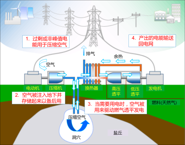 目前,德国(Huntorf 60MWh)和美国(McIntosh 110MW)CAES电站已投入规模化商业应用,日、瑞士、俄、法、意、卢森堡、以色列和韩国等也在积极开发CAES电站。鉴于传统CAES存在的依赖燃料和大型储气室的技术瓶颈,国内外多家公司及研究机构提出了多种新型的CAES系统方案,包括蓄热式压缩空气储能、绝热压缩空气储能、液态空气储能等,可以一定程度上解决上述技术瓶颈。