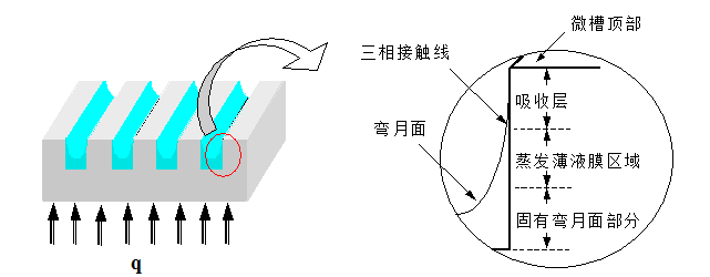 微槽群复合相变热沉原理性结构及其弯月面形状